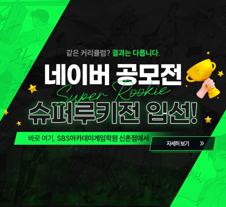 게임 진학에 대해 고민하던 중 호기심에 게임 학원을 알아보았고, 천안에 SBS아카데미게임학원이 이제 막 생겼다는 것을 검색을 통해 알게 되었습니다. 그때의 호기심이 아니었다면 지금의 나도 없다고 생각합니다.